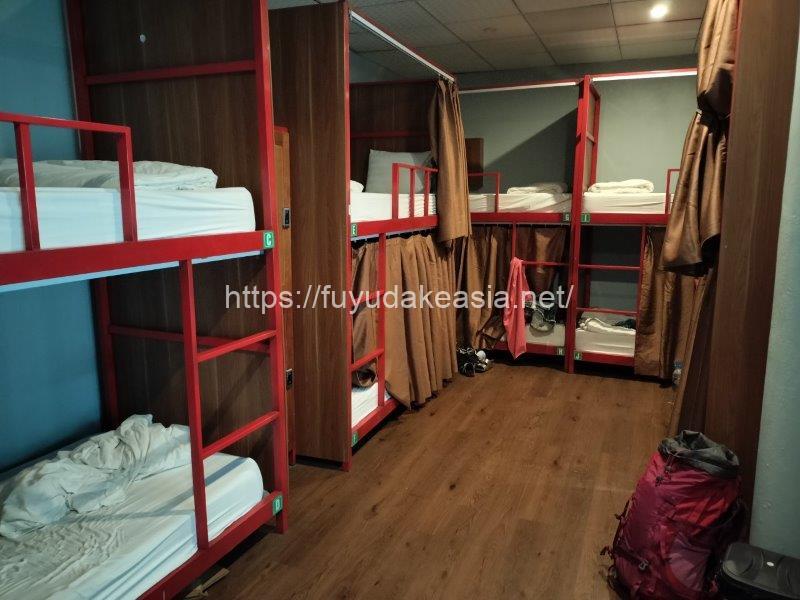 自分は入口付近のベッドだったので良かったですが、部屋の奥の方のベッドはギュッと敷き詰められていてゆったりしにくそうに思えました。