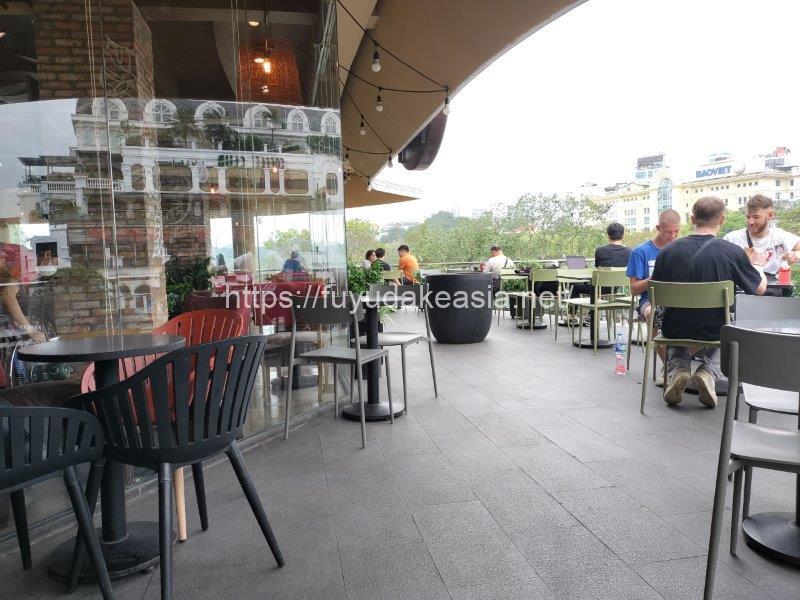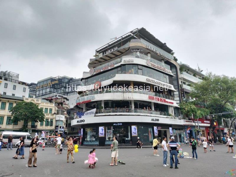 ホアンキエム湖近くのビル3Fのハイランズコーヒーのテラスは景色が良く、ホアンキエム湖や旧市街の街並みがよく見えるので結構オススメです。