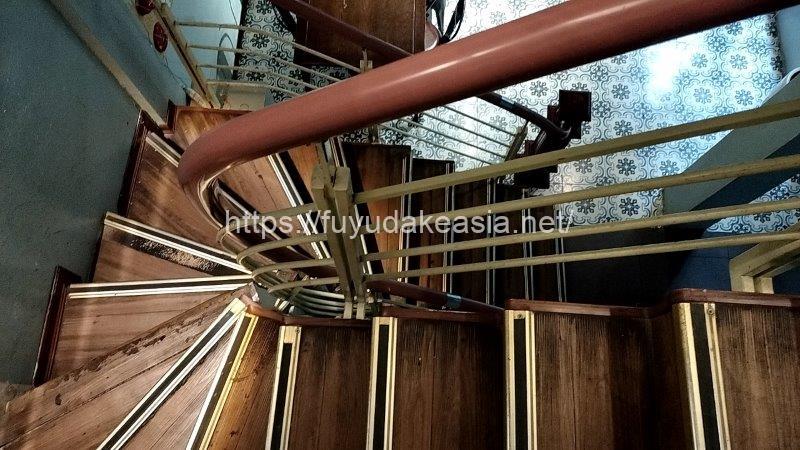 今回泊まったドミ部屋は、共有スペースの奥の階段を登った2階だったのですが、階段が急でなおかつカーブの部分の面積が狭いので踏み外す危険性があります。