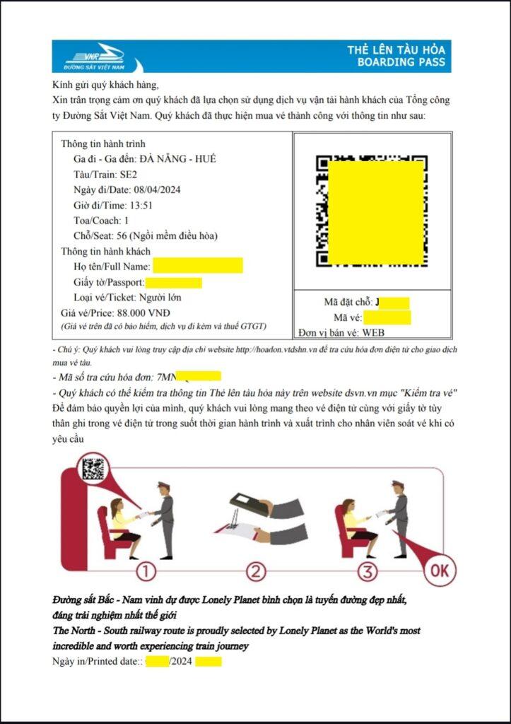 その後送られてきたメールによると、チケットの印刷はベトナム鉄道の駅にある自動チケット印刷機で出来るようです。