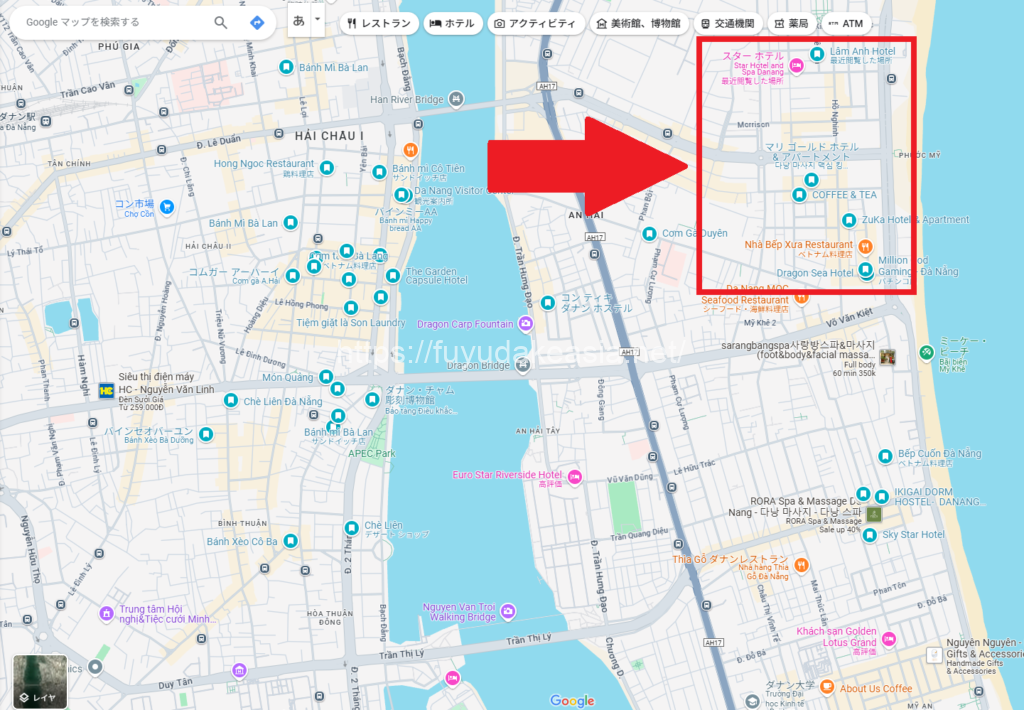 まずはドラゴンブリッジの西側のハイチャウ区に2泊する予定です。