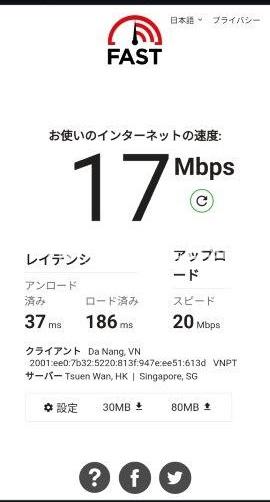 ベッドで測ったWi-Fi速度が、17Mbpsで十分な利用が出来ました。
