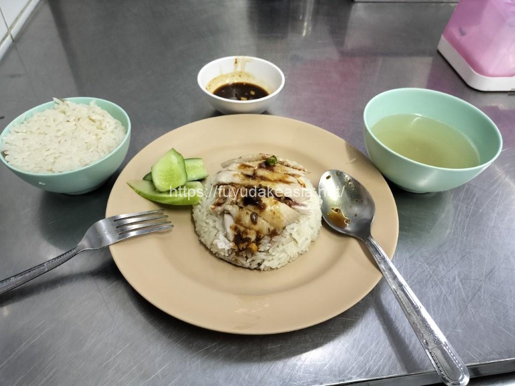 大盛りがなかったので、カオマンガイ並サイズ(50バーツ)とライス追加(15バーツ)で、65バーツ(約325円)