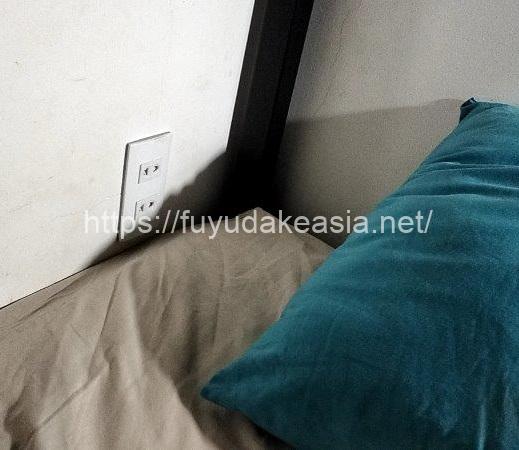コンセントはベッド内とベッドの外にあり便利でした。ベッド用の照明(スイッチ式)もあります。