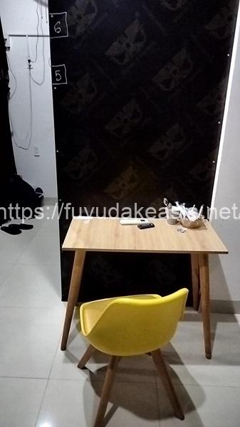 ベッドルームに机と椅子が1セットあったので、そこでPC作業するか、ベッド内か、くらいでした。(宿でPC作業するなら)