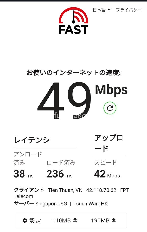 ベッドで測ったWi-Fi速度が、49Mbpsとなかなかの快速でネット利用は問題無しでした。